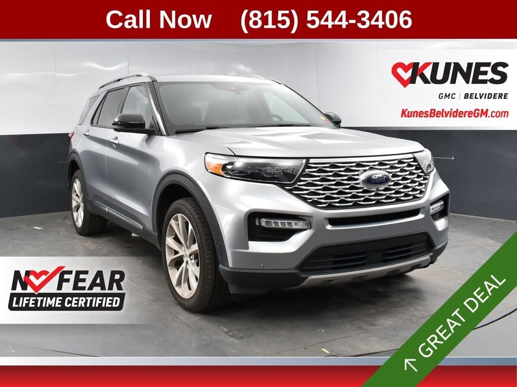 Certified. 2021 Ford Explorer Platinum Platinum 10.1 LCD Capacitive Portrait Touchscreen, 2 Additional Speakers, Auto High-beam Headlights, Brake assist, Electronic Stability Control, Exterior Parking Camera Rear, FordPass Connect, Heated steering wheel, Leather Htd/Ventilated Sport Captain's Chairs, Memory seat, Navigation System, Power Liftgate, Premium Technology Package, Radio: B&O Sound System by Bang & Olufsen, Steering wheel memory, Steering wheel mounted audio controls, SYNC 3 Communications & Entertainment System, Voice-Activated Touchscreen Navigation System. Silver